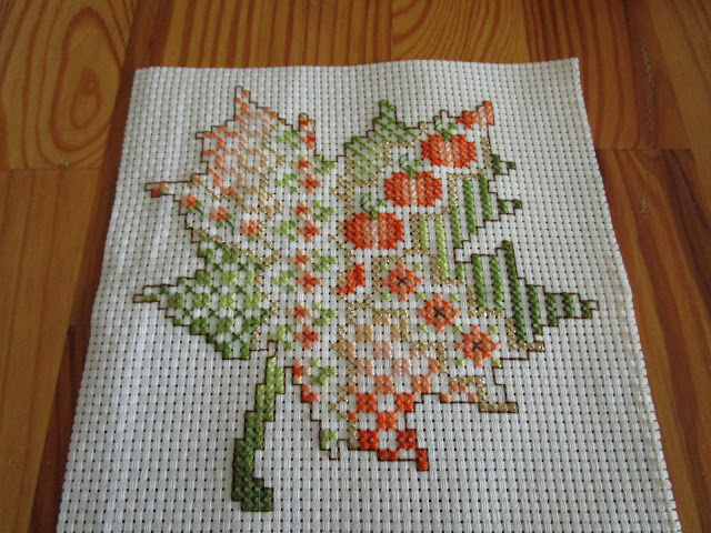 I'm working on a new cross stitch pattern by Pamela Kellogg that I saw on her blog Kitty and Me Designs called Crazy Maple Leaves.
